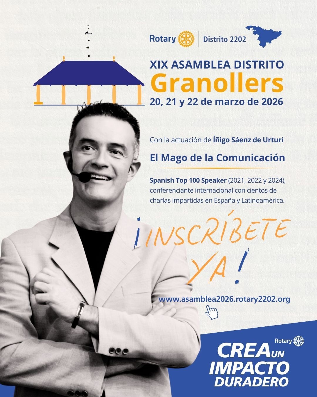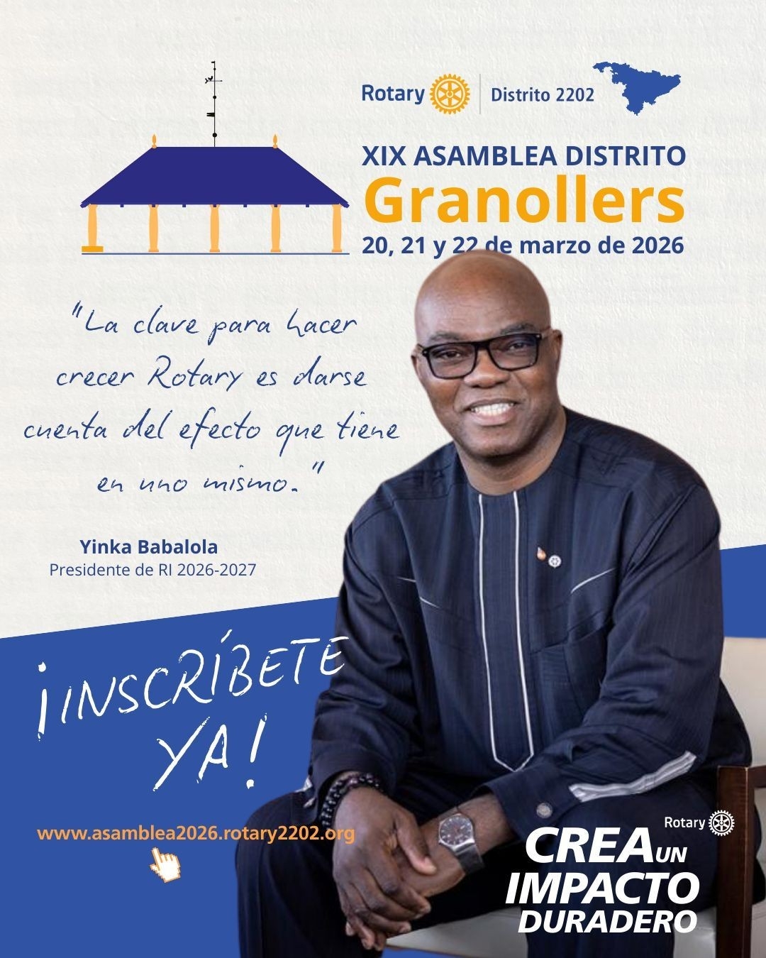 Estoy emocionado de invitaros a visitar la página web de la XIX ASAMBLEA DEL DISTRITO que se celebrará en Granollers los próximos días 20,21 y 22 de marzo de 2026.